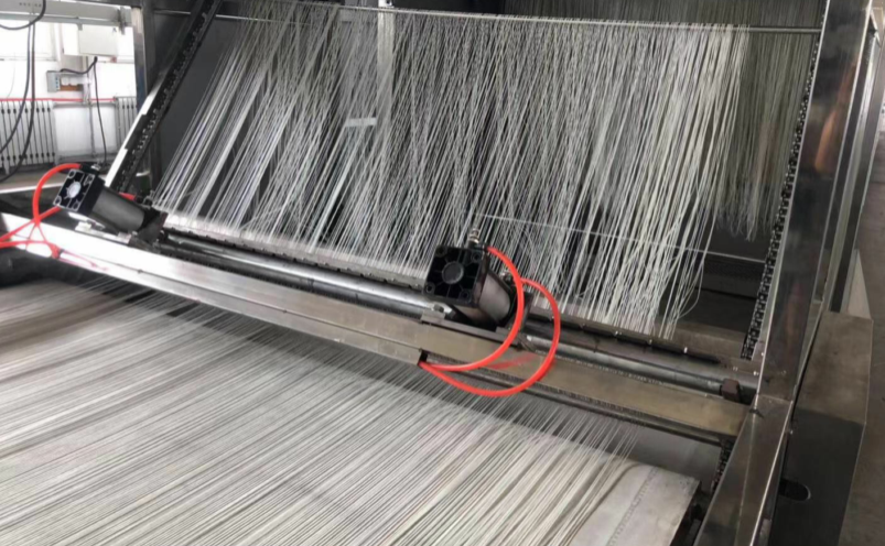 表面凝固的粉絲自動掛到粉桿上并切斷成設定長度,切斷長度可調(diào), 設備運行穩(wěn)定,切斷浪費少;