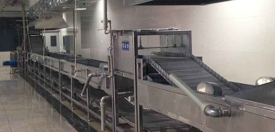 馬鈴薯淀粉→篩分清理→貯料緩沖→提升 → 和面→緩沖喂面→擠條→擠絲→ 水煮 → 水冷卻→切斷