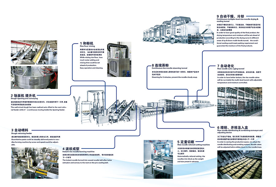 冷卻后的米粉被自動(dòng)切斷成設(shè)定的大小,切口整齊,重量穩(wěn)定,面塊寬度及長度可以調(diào)節(jié);