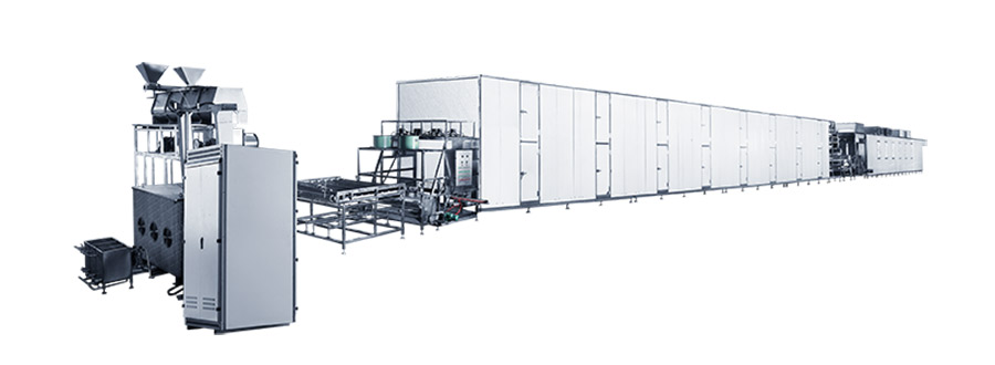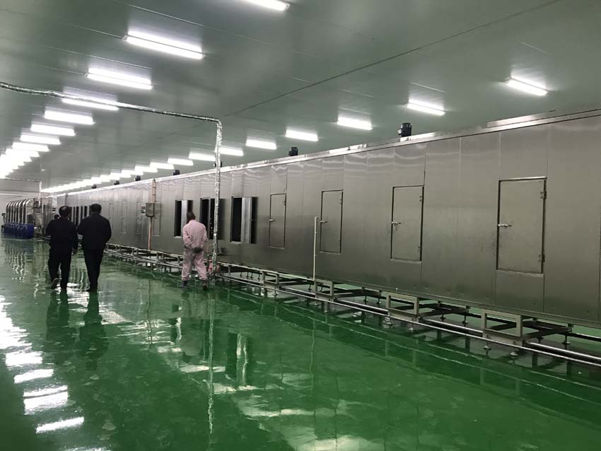 為了達(dá)到均勻的干燥效果, 干燥隧道依據(jù)干燥曲線自動(dòng)調(diào)控;將干燥后的米線冷卻到溫室進(jìn)行包裝,從而保證產(chǎn)品質(zhì)量,便于保存;