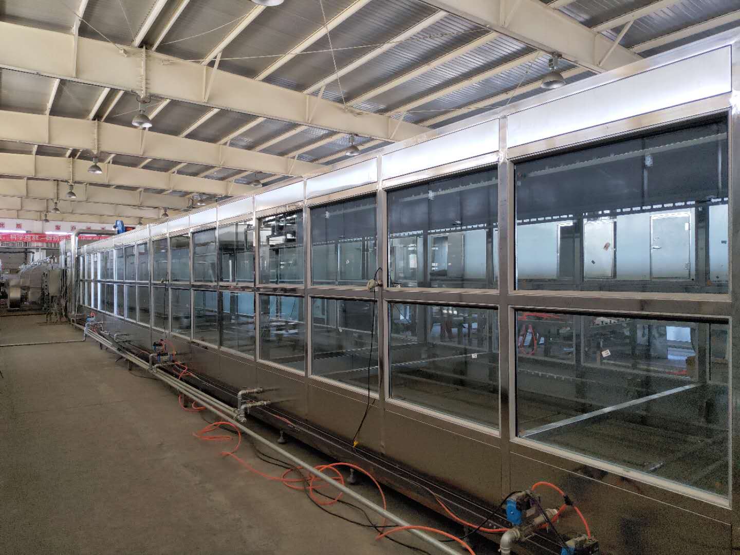 網(wǎng)帶將擠出的面條或河粉帶入預(yù)干燥機(jī),對(duì)面條或河粉表面進(jìn)行干燥,使其不粘連;